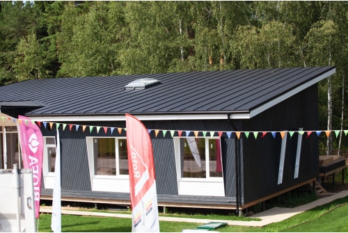 Этот кровельный материал подходит для крыш с пологими скатами и поставляется в широкой цветовой палитре.