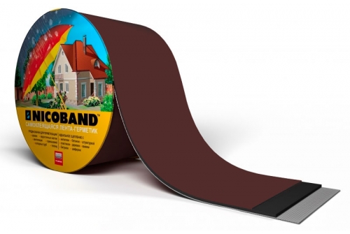Герметизирующая лента Никобaнд (NICOBAND) получают путем одностороннего нанесения на фольгированною УФ — стойкую пленку самоклеящегося битумно-полимерного вяжущего, состоящего из битума, полимерного модификатора и специальных адгезионных добавок.