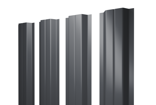 Штакетник П-образный A с прямым резом 0,5 GreenCoat Pural BT, matt RR 23 темно-серый (RAL 7024 мокрый асфальт)