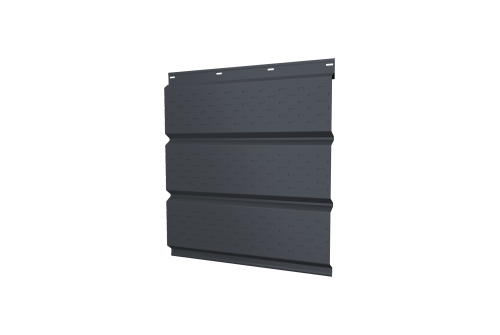 Описание товара: "Софит металлический полная перфорация 0,45 Drap TR с пленкой RAL 7024 мокрый асфальт"
